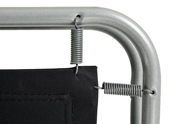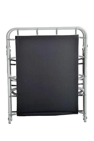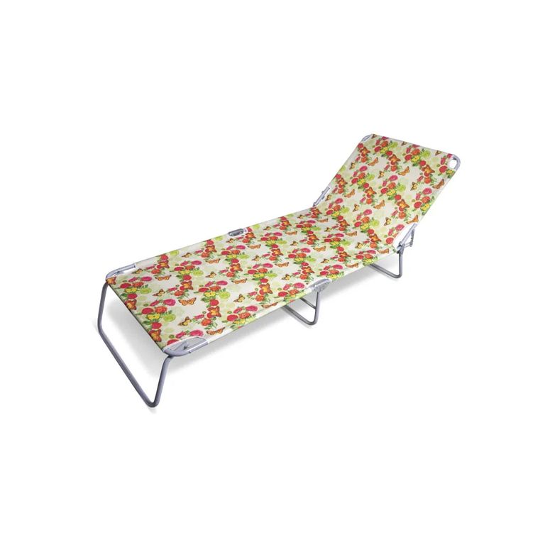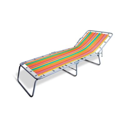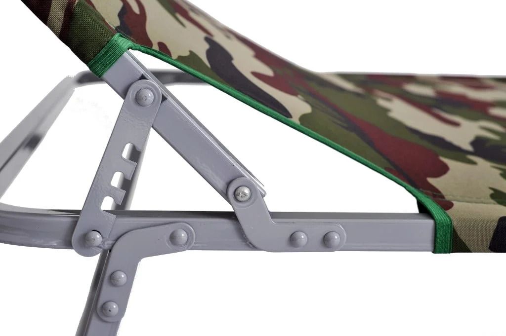 Раскладушка на металлическом каркасе, тканевая основа,с подголовником.