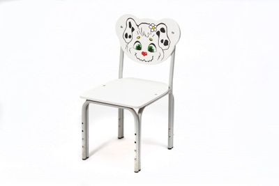 Это фанерный стульчик на металлокаркасе, имеющий пластмассовые заглушки на торцах. Производство детских стульев осуществляется из клееной фанеры. Для защиты от внешних воздействий фанера покрывается лаком. Размер регулировки 220...340