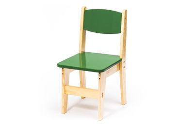 Боковые части - дерево (сосна) Сиденье и спинка - МДФ, покрытая краской. Стул имеет различные ростовые группы: 260, 300, 340