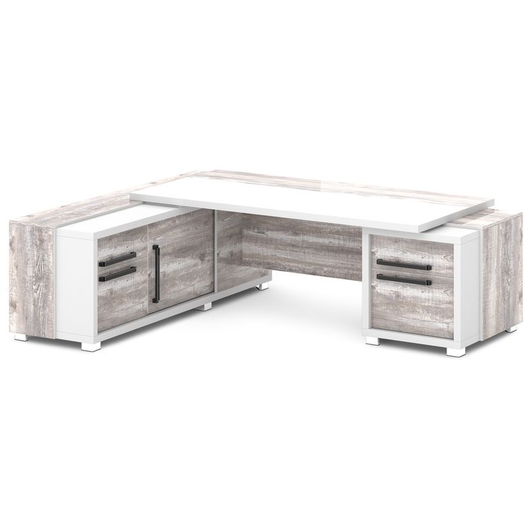 Стол руководителя с тумбой и греденцией. Размер столешницы 2000х1000 мм. Состоит из двух тумб (тумба малая и тумба-греденция), служащих опорами, столешницы и соединительного щита. Стол левый – тумба-греденция с левой стороны, малая тумба – с правой стороны. Стол правый – тумба-греденция с правой стороны, малая тумба – с левой стороны. На рис. - правый.