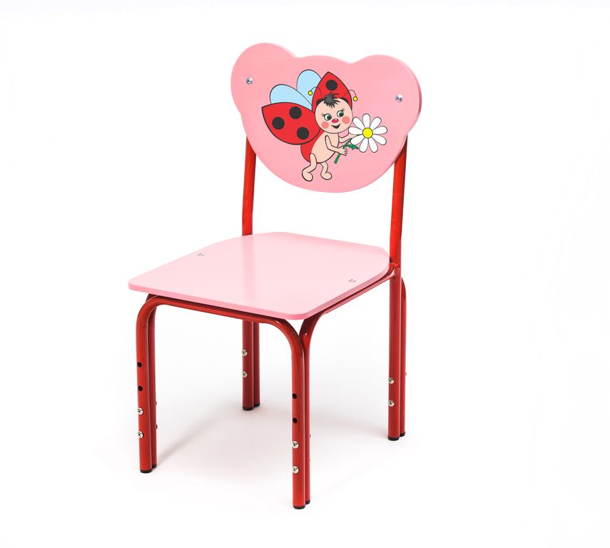 Это фанерный стульчик на металлокаркасе, имеющий пластмассовые заглушки на торцах. Производство детских стульев осуществляется из клееной фанеры. Для защиты от внешних воздействий фанера покрывается лаком. Размер регулировки 220...340