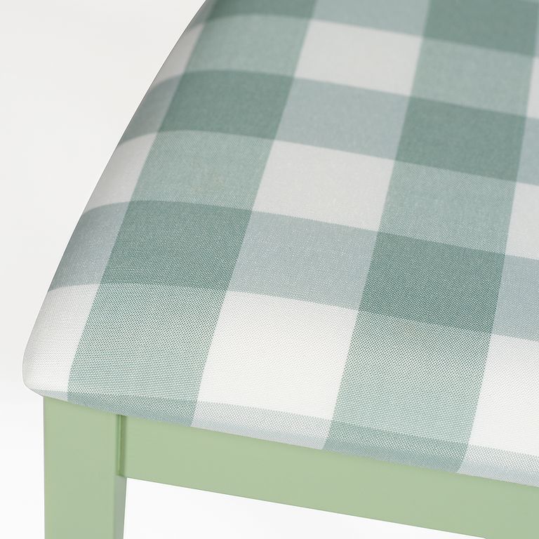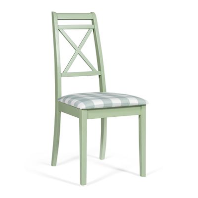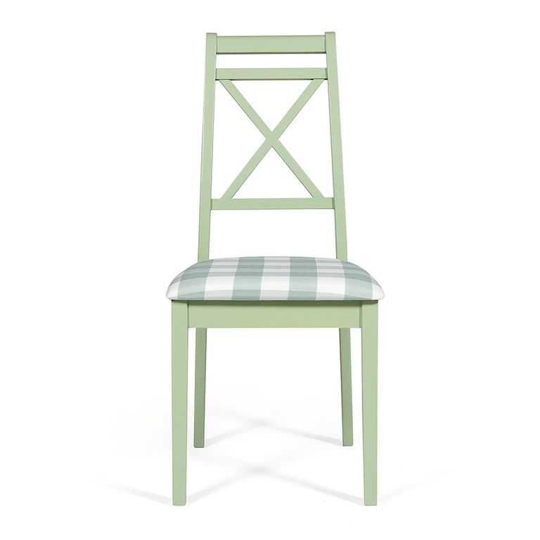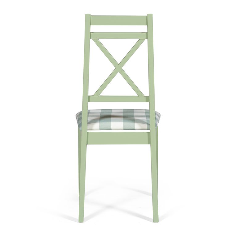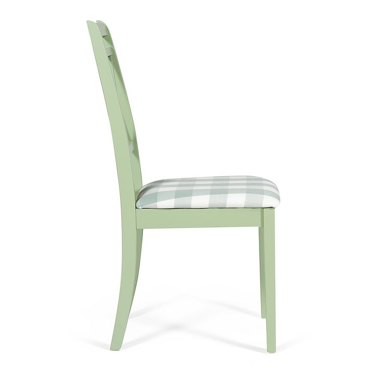 - Классический итальянский стул с мягким сиденьем. Основание сделано из натуральной гевеи, цвет фисташковый Обивка сидения и спинки нежная зелёная клетка