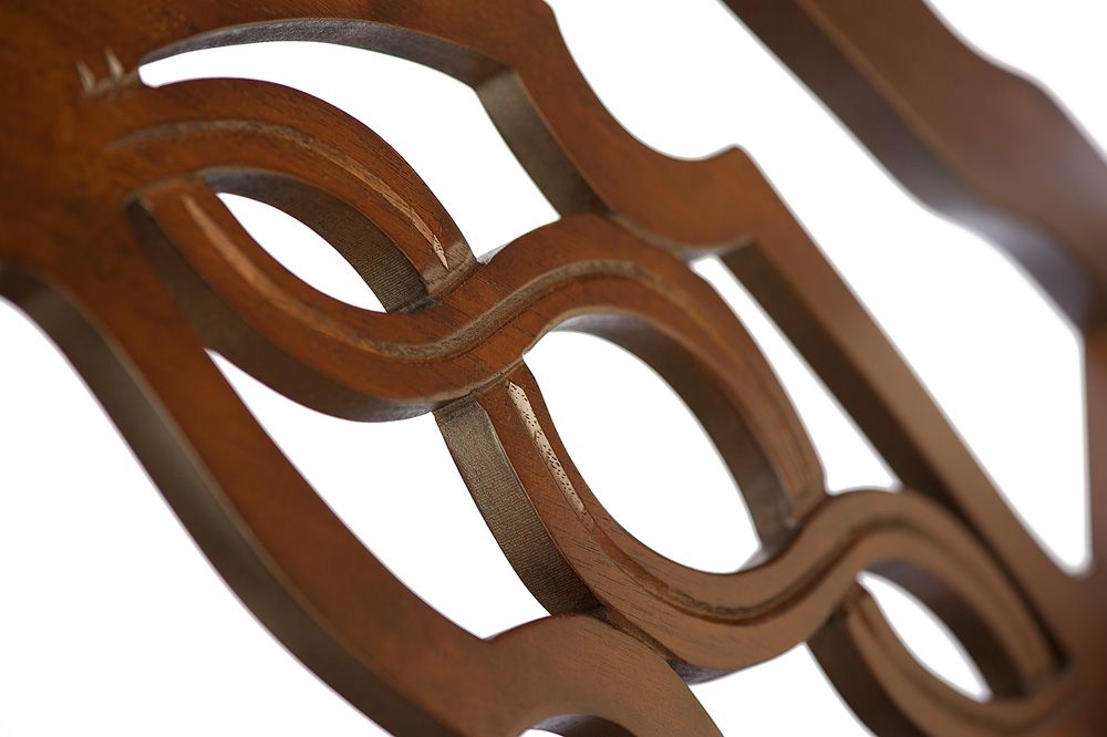 Деревянный стул с резной спинкой и мягким сиденьем из коллекции обеденной мебели. Ручное исполнение узора на деревянной спинке стула придает модели дополнительного изящества. Этот стул помимо эстетических и практических качеств, отличается прочностью. Он прослужит долгие годы, не требуя особого ухода.