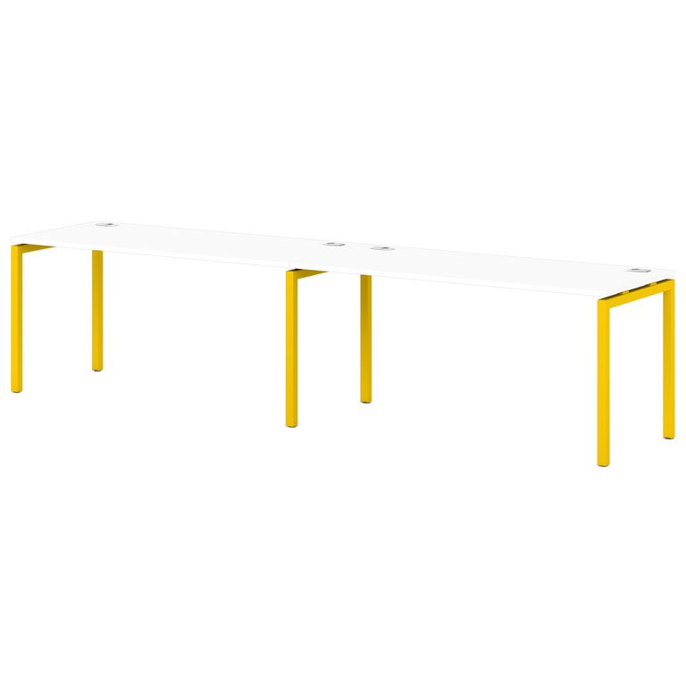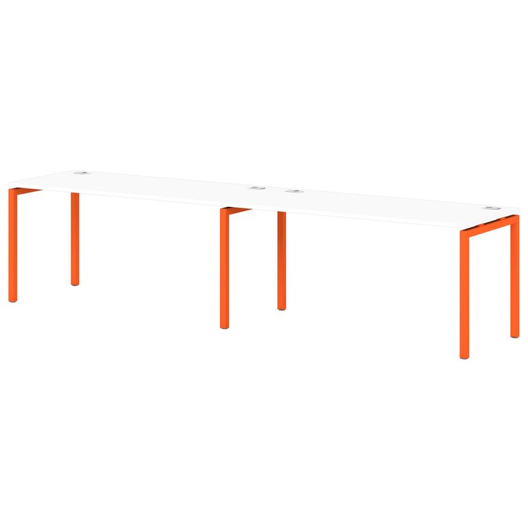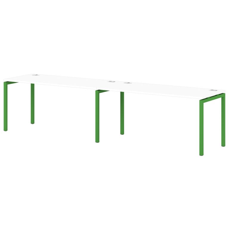 Металлокаркас представляют собой разборную, легкособираемую конструкцию, состоящую из опор и соединителей, стянутых между собой крепежными узлами. Опоры оборудованы регулировочными ножками, с возможностью регулировки по высоте. Металлокаркасы изготавливаются сечением 40х40 мм и окрашены порошковой краской в белый или серый цвет. В столешницах установлены по два кабель-канала и лоток сетчатый для проводов. Все соединительные элементы оснащены фурнитурой для многократной сборки и разборки изделия.