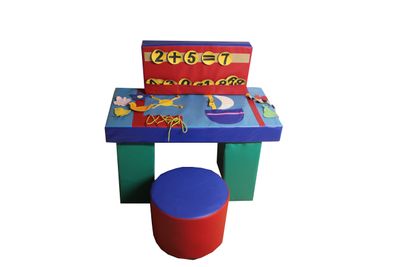 Занятия за таким столом учат детей различать цвета, формы предметов, получать представление о количественном составе. Игровые поля расположены с обеих сторон столешницы и снабжены множеством шнуровок, липучек, пуговиц и застежек, работа с которыми развивает мелкую моторику рук, зрительно-моторную координацию, улучшает зрительное восприятие, концентрацию внимания, координацию движений и умение сравнивать предметы. Комплектуется пуфиком для сидения.