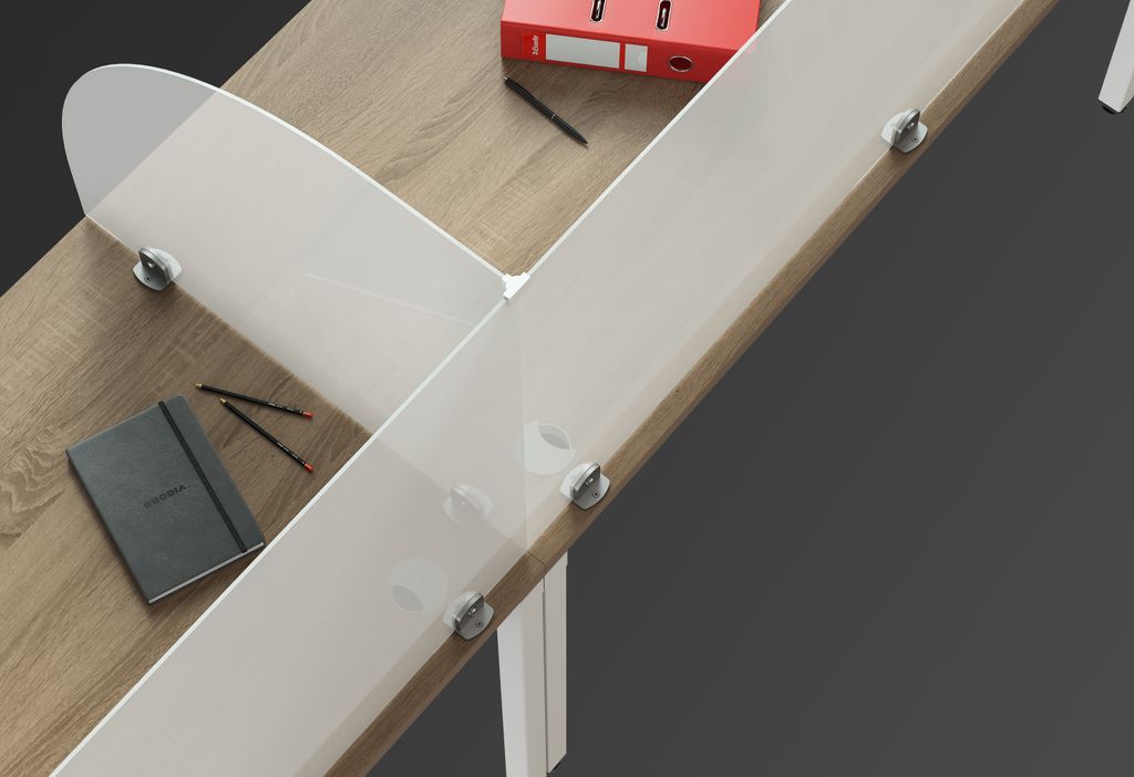 Экраны торцевые из оргстекла молочного цвета, эргономичной формы. Экраны комплектуются двумя кронштейнами.