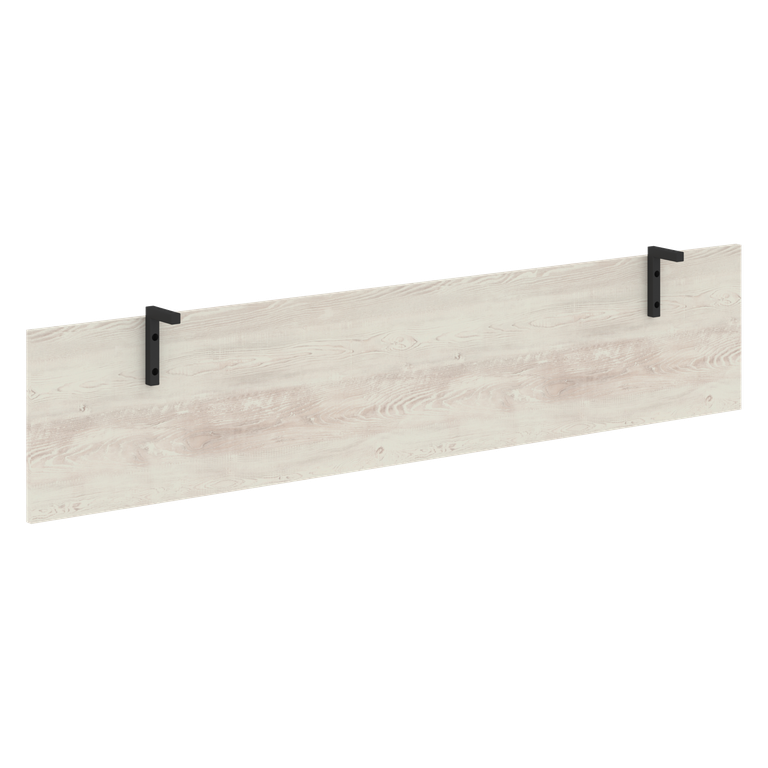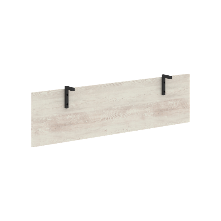 Панель из ЛДСП т.18мм с кромками ПВХ т.2мм по периметру и комплектуется кронштейнами из профиля трубы 20х20х1,5 "Г" - образной формы. Комплектуются саморезами
