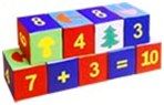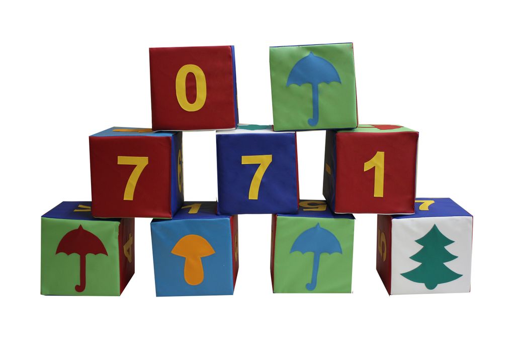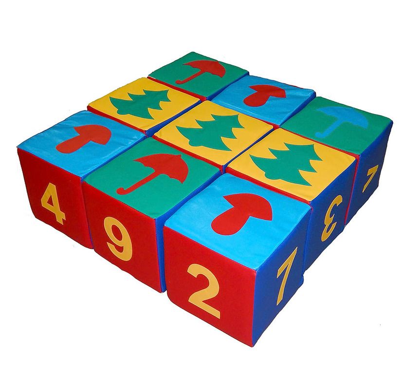 Яркие кубики знакомят детей с математикой. К тому же эти модули могут использоваться детьми в подвижных играх, в качестве строительного материала и удобных сидений. На стороны кубиков нанесены цифры и математические знаки, из которых можно составлять простые примеры сложения и вычитания.