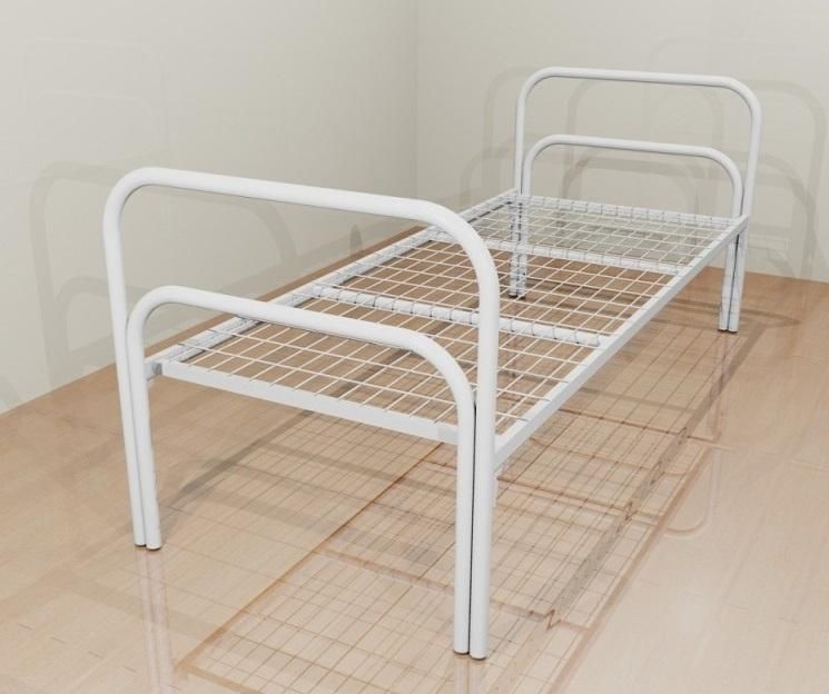 Кровать металлическая одноярусная, предназначена для обустройство больниц, домов отдыха, летних лагерей, общежитий.