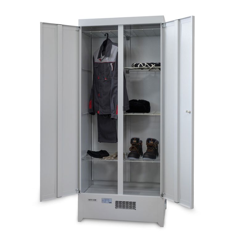 Металлический двухсекционный сушильный шкаф ШСО-22М используется для сушки влажной одежды и обуви.