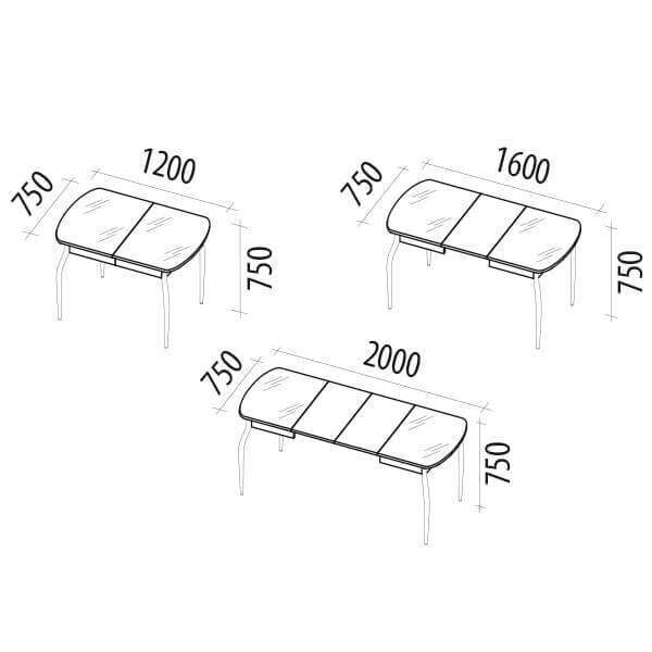 Механизм трансформации «Раздвижение и две вставки» позволяет увеличивать длину столешницы на 40 и на 80 см. При раскладывании стола вставки соединяются скрытыми замками фиксации столешниц, что придает дополнительную жесткость конструкции.