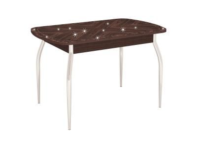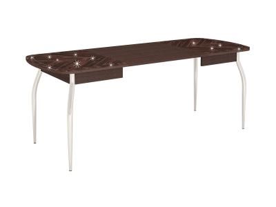 Орфей 30.10» – современный обеденный стол. Особую привлекательность столу придают глянцевый блеск стеклянной столешницы с мерцающим рисунком, скругленные края и металлические стоевые изогнутой формы. Столешница выполнена из особо прочного стекла. Для предотвращения повреждения стеклянной столешницы горячую посуду следует ставить только на специальную подставку.