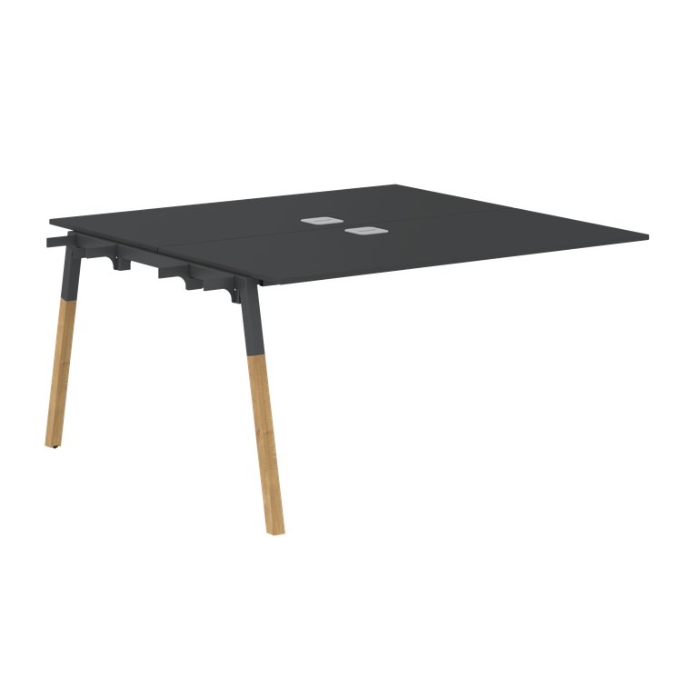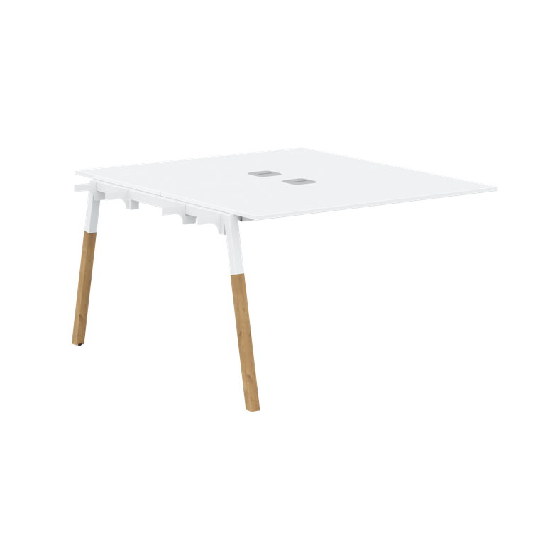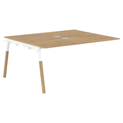 Столешницы ЛДСП т.18мм. c кромкой ABS т.2.мм, каждая комплектуется квадратной заглушкой кабель-канала по центру и каждая 2-мя траверсами. Между столешницами зазор 6мм для установки настольных Экранов. Столешницы комплектуются Промежуточной опорой комбинированной А-образной формы, верхняя часть из профиля трубы 40х40мм и нижняя часть из массива бука; отделка – масло-воск. Промежуточная опора с регулировкой внизу.