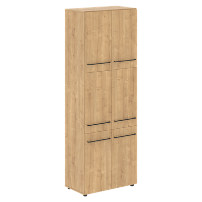 Двери из ЛДСП т.18мм с кромкой ПВХ т.2мм по периметру, комплектуются петлями с доводчиком и без, металлической ручкой прямоугольной формы с межцентровым расстоянием 320мм.