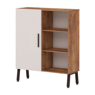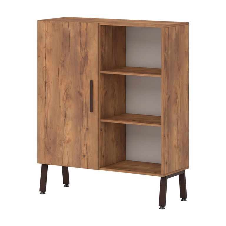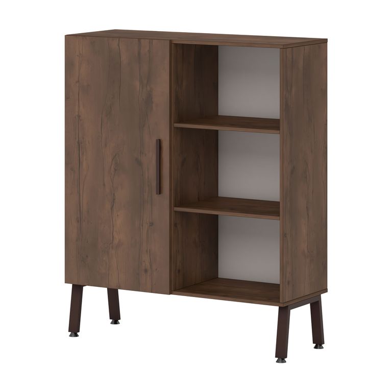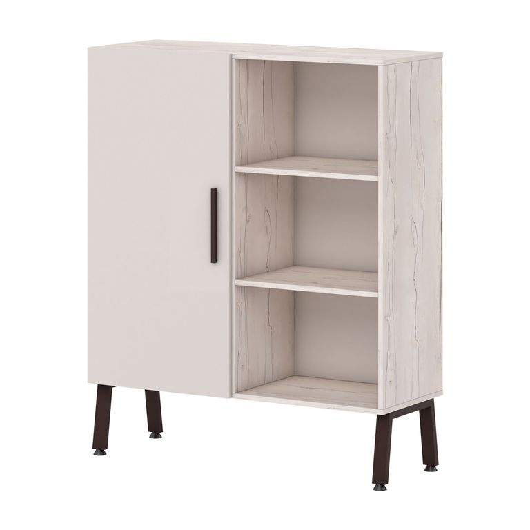 Шкафная группа предоставляет максимум возможностей: открытые стеллажи, двери со стеклом в алюминеевом профиле в цвете коньяк, выдвижные ящики - предоставляют многообразие вариантов.