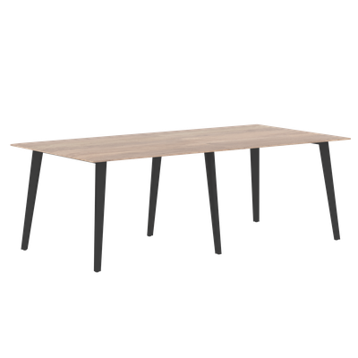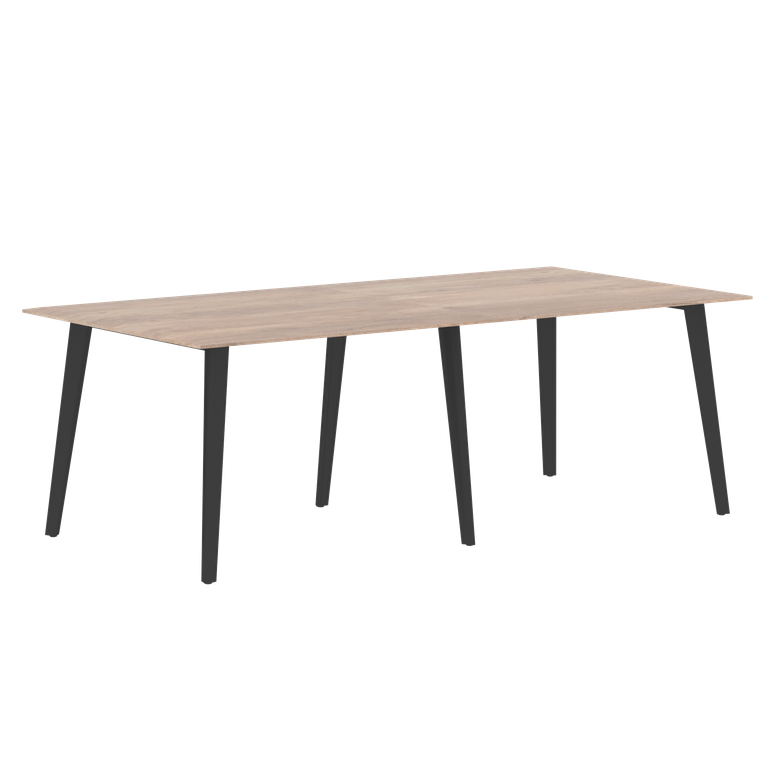 Столешница из одностороннего МДФ т. 19мм в пленке ПВХ с фрезеровкой по периметру, цвет - Дуб Каньон. Комплектуется металлическими опорами треугольно-конической формы с траверсами рамочного соединения и промежуточной опорой, цвет опор - Антрацит.