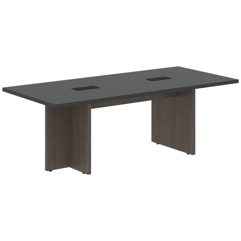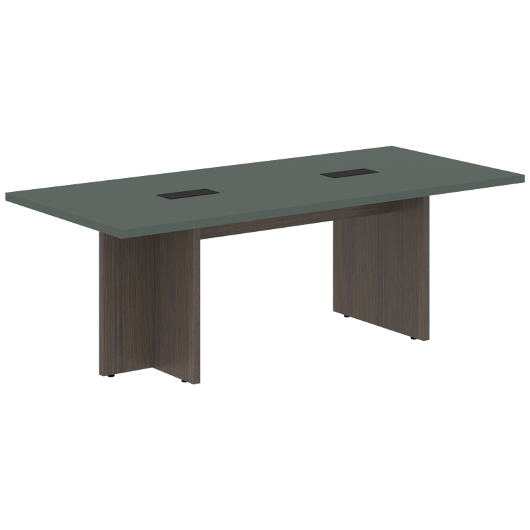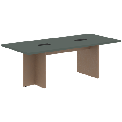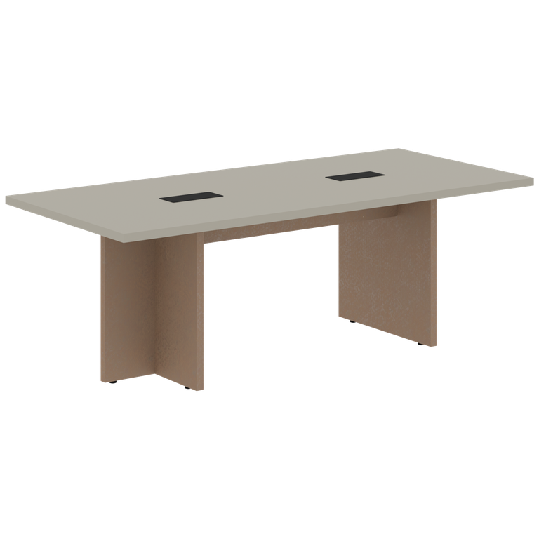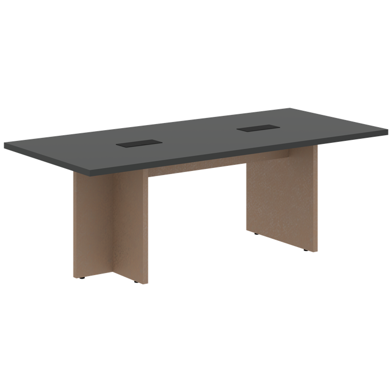 Столешница из МДФ т.36мм с покрытием пленкой PET(ПЭТ) с кромками ПВХ т.2мм по периметру. Опоры из ЛДСП т.36мм с кромками ПВХ т.2мм, комплектуются регулируемыми опорами. В столешнице два встраиваемых выдвижных удлинителя NOVA габаритом 263х118х67, 2 евророзетки с заземлением 220В (Schuko), 2 порта USB 5В, 2,1А.