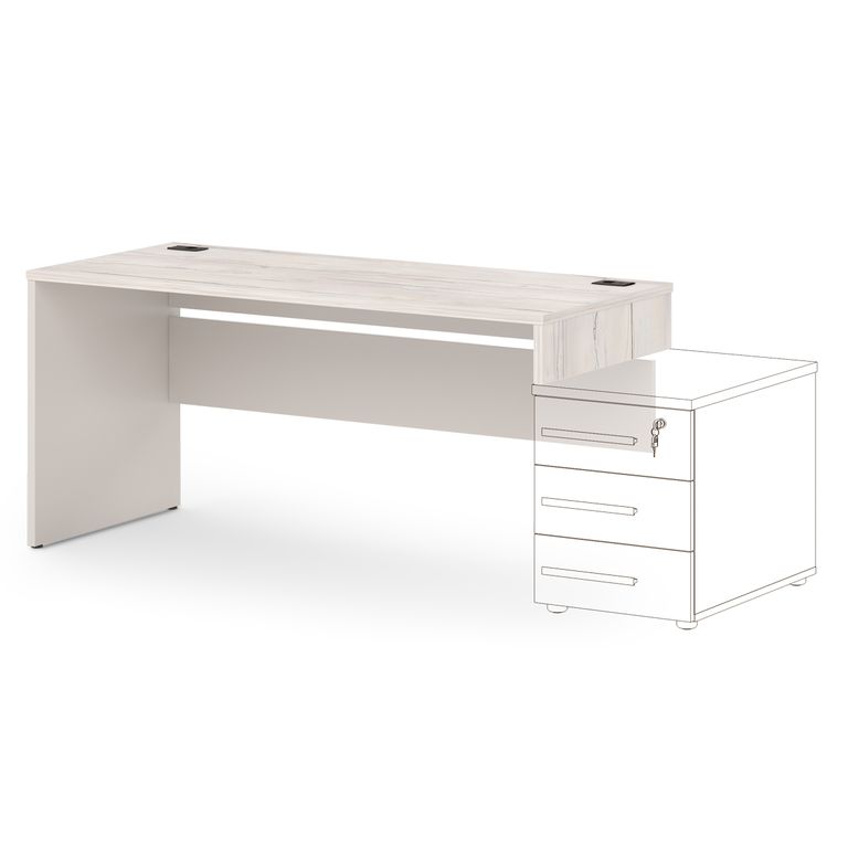 Офисный стол концевой прямой с 2 заглушками кабель-канала. Предназначен для создания бенч-систем. Стол может замыкать цепочку из столов с левой или правой стороны.