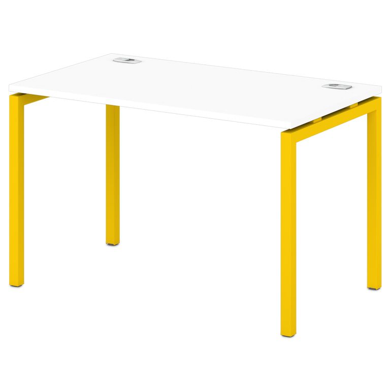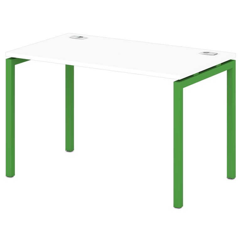 Металлокаркас представляют собой разборную, легкособираемую конструкцию, состоящую из опор и соединителей, стянутых между собой крепежными узлами. Опоры оборудованы регулировочными ножками, с возможностью регулировки по высоте. Металлокаркасы изготавливаются сечением 40х40 мм и окрашены порошковой краской в белый или серый цвет. В столешнице установлены два кабель-канала и лоток сетчатый для проводов. Все соединительные элементы оснащены фурнитурой для многократной сборки и разборки изделия.