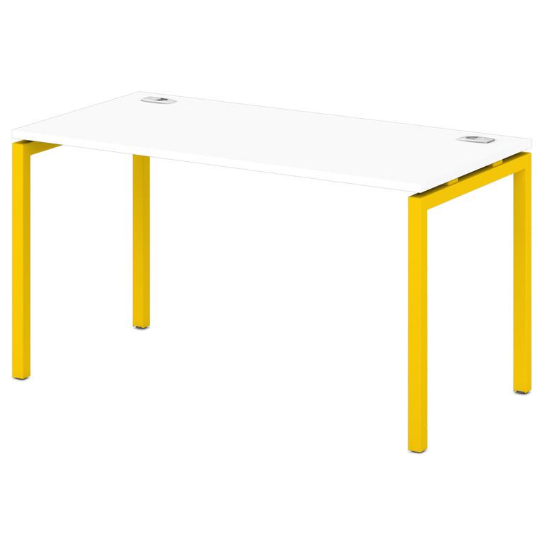 Металлокаркас представляют собой разборную, легкособираемую конструкцию, состоящую из опор и соединителей, стянутых между собой крепежными узлами. Опоры оборудованы регулировочными ножками, с возможностью регулировки по высоте. Металлокаркасы изготавливаются сечением 40х40 мм и окрашены порошковой краской в белый или серый цвет. В столешнице установлены два кабель-канала и лоток сетчатый для проводов. Все соединительные элементы оснащены фурнитурой для многократной сборки и разборки изделия.