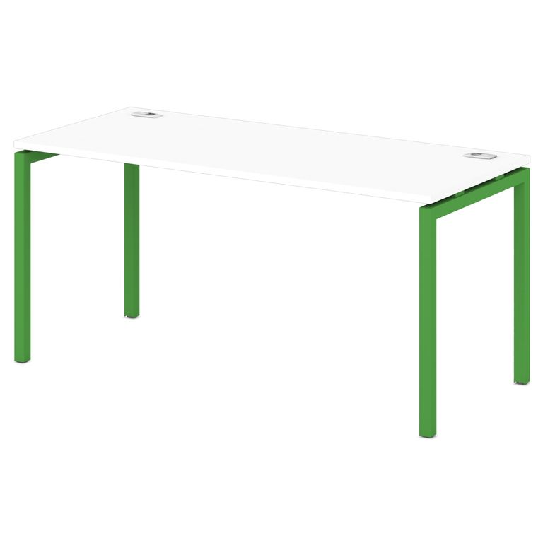 Металлокаркас представляют собой разборную, легкособираемую конструкцию, состоящую из опор и соединителей, стянутых между собой крепежными узлами. Опоры оборудованы регулировочными ножками, с возможностью регулировки по высоте. Металлокаркасы изготавливаются сечением 40х40 мм и окрашены порошковой краской в белый или серый цвет. В столешнице установлены два кабель-канала и лоток сетчатый для проводов. Все соединительные элементы оснащены фурнитурой для многократной сборки и разборки изделия.