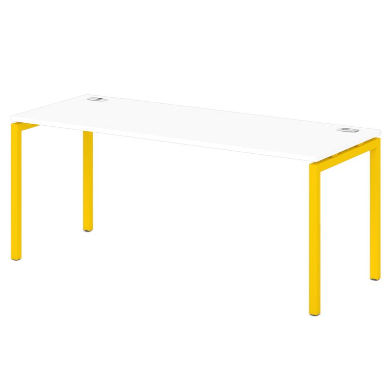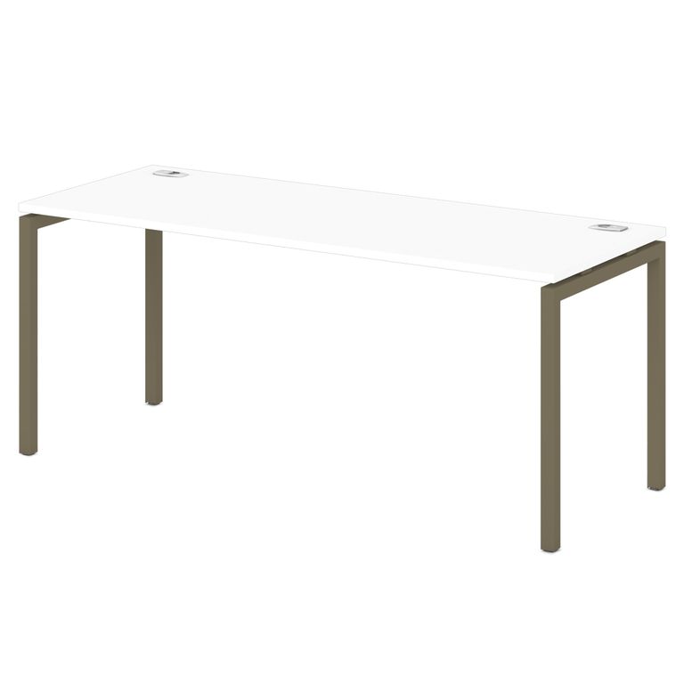 Металлокаркас представляют собой разборную, легкособираемую конструкцию, состоящую из опор и соединителей, стянутых между собой крепежными узлами. Опоры оборудованы регулировочными ножками, с возможностью регулировки по высоте. Металлокаркасы изготавливаются сечением 40х40 мм и окрашены порошковой краской в белый или серый цвет. В столешнице установлены два кабель-канала и лоток сетчатый для проводов. Все соединительные элементы оснащены фурнитурой для многократной сборки и разборки изделия.