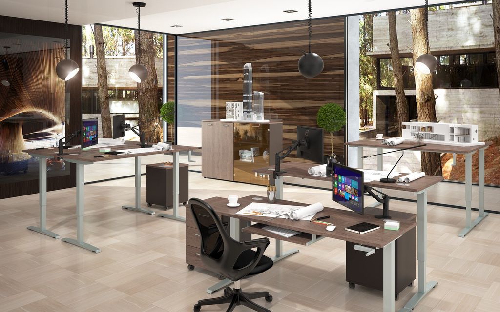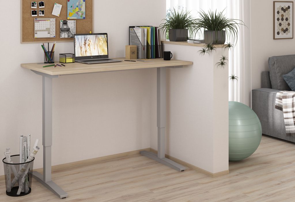 Столешница из ЛДСП т.25мм., кромка ПВХ т. 2мм. Комплектуется двумя заглушками кабель-каналов. Опоры - металлокаркас с механическим устройством изменения высоты. Металлокаркас из профиля трубы, в основании 675х60х45 т.3мм, телескопические опоры 50х50х2,5мм и 60х60х3,5мм. Основание подстолья толщиной 2,5мм с траверсой, толщина внешней трубы 2,5мм, внутренней - 2 мм.