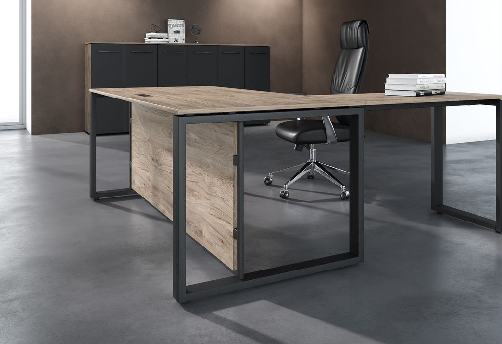 Столешница из ЛДСП т.18мм с кромкой ПВХ по периметру т.2мм, комплектуется заглушкой к/к черного цвета 180х51мм. Металлокаркас - опоры О-образной формы из профиля трубы 70х30х1,5, цвет - Антрацит, с регулировкой по высоте. Две траверсы металлические крашенные из профиля трубы 40х25х2мм. Стол комплектуется высокой фронтальной панелью из ЛДСП т.18мм, h= 646мм с кромкой ПВХ т. 0,45мм. Столы рекомендуем комплектовать подвесным металлическим кабель-каналами МК-0140(S), 0160(S) и 0180(S)