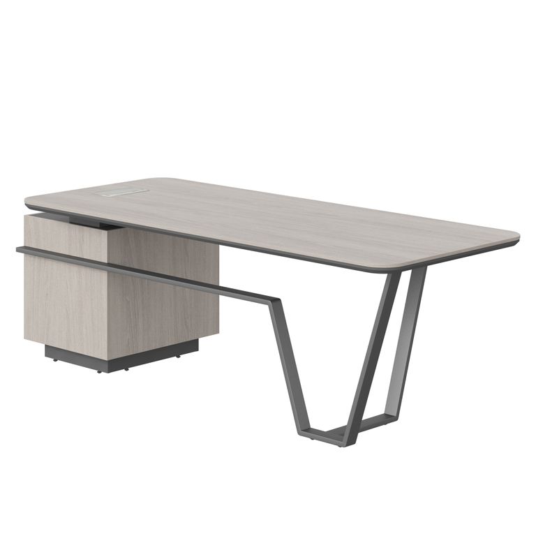 Стол установлен на металлическую опору. Металлическая опора имеет изгибы с внешним радиусом 20 мм и угловым сварным соединением с внутренней стороны. Опоры с регулировкой по высоте: 0 - 12 мм. Опора покрыта полимерной порошковой краской с эффектом «муар». Опора составная из двух частей. Узел соединения – скрытый.