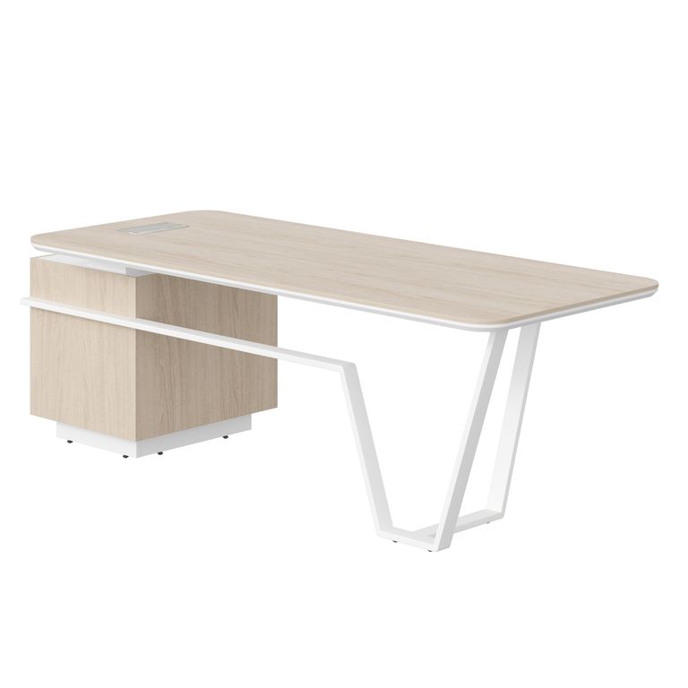 Каркас опорной тумбы изготовлен из ДСП 18 мм. Боковые и задняя декоративные панели – плита МДФ толщиной 12 мм, облицована шпоном. Фасады – плита МДФ 19 мм, облицованная шпоном. На лицевой части некоторых фасадов нанесен декоративный фигурный рисунок по технологии фрезерования поверхности с окрашиванием фрезерованной части цветной эмалью в цвет унидекора. В основании каркаса опорной тумбы установлена цокольная коробка из плиты ДСП 18 мм. Опоры тумбы имеют регулировку по высоте: 0 - 12 мм.
