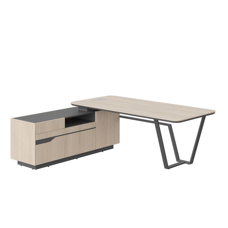 Каркас опорной тумбы изготовлен из ДСП 18 мм. Боковые и задняя декоративные панели – плита МДФ толщиной 12 мм, облицована шпоном. Фасады – плита МДФ 19 мм, облицованная шпоном. На лицевой части некоторых фасадов нанесен декоративный фигурный рисунок по технологии фрезерования поверхности с окрашиванием фрезерованной части цветной эмалью в цвет унидекора. В основании каркаса опорной тумбы установлена цокольная коробка из плиты ДСП 18 мм. Опоры тумбы имеют регулировку по высоте: 0 - 12 мм.