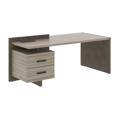 Столешница из ЛДСП т.38мм с кромкой ПВХ т.2мм по периметру, с прямоугольной заглушкой черного цвета. Высота столов по столешнице - 760 мм. Тумба приставная малая с 2-мя ящиками. Ящики из ЛДСП т. 12 мм, цвет - Графит, со скрытыми шариковыми направляющими полного выдвижения с доводчиком и ручками черного цвета. В тумбе предусмотрены дополнительные проводники для подвода проводов сетевого питания и коммуникаций. Опоры регулируемые с диапазоном регулировки высоты 12 мм.