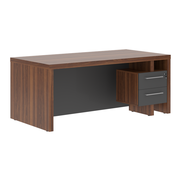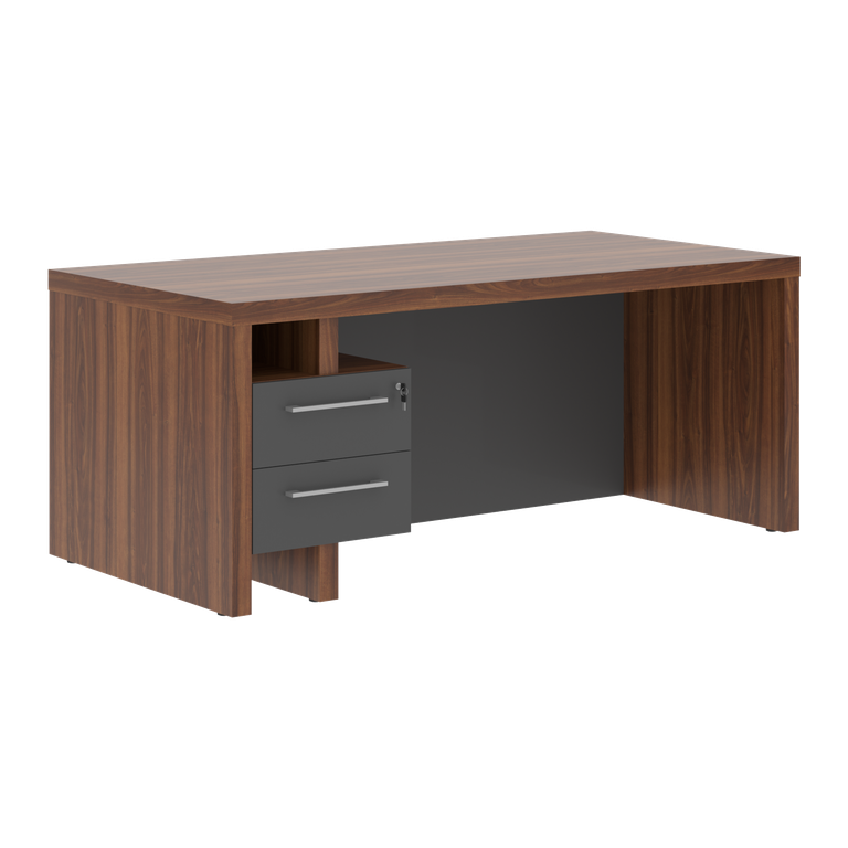 Стол комплектуется регулируемыми опорами. Каркас тумбы из ЛДСП т.18 мм, ящики-фолдинги, центральный замок. Расположение тумбы универсальное.