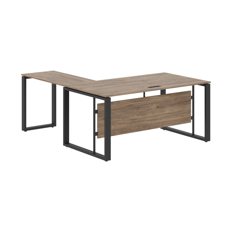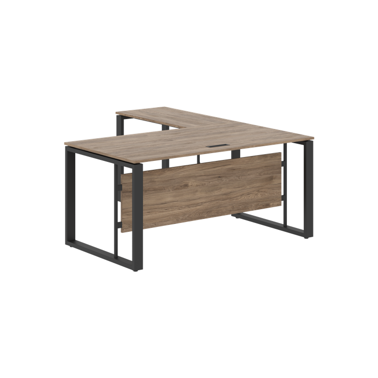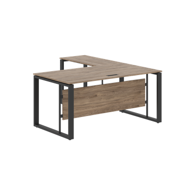 Столешницы стола и приставки из ЛДСП т.18мм с кромкой ПВХ по периметру т.2мм. Столешница стола комплектуется заглушкой к/к черного цвета 180х51мм. Металлокаркас - опоры О-образной формы из профиля трубы 70х30х1,5, цвет - Антрацит, с регулировкой по высоте. Каждая столешница комплектуется двумя металлическими крашенными траверсами из профиля трубы 40х25х2мм. Стол комплектуется короткой фронтальной панелью из ЛДСП т.18мм, h=400мм с кромкой ПВХ т.0,45мм. Приставка универсальная, устанавливается слева или справа.