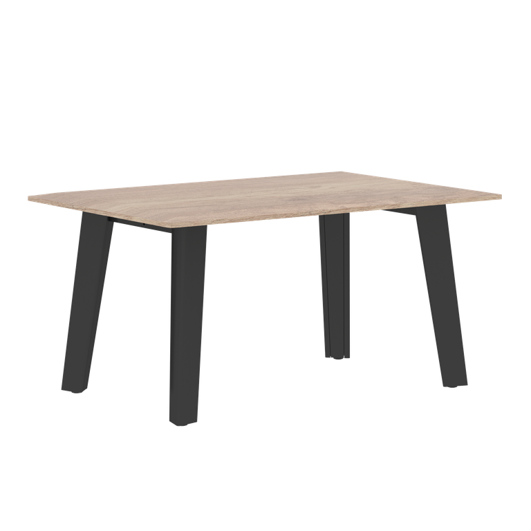 Столешница из одностороннего МДФ т. 19мм в пленке ПВХ с фрезеровкой по периметру, цвет - Дуб Каньон. Комплектуется металлическими опорами треугольно-конической формы и траверсами рамочного соединения, цвет опор - Антрацит.