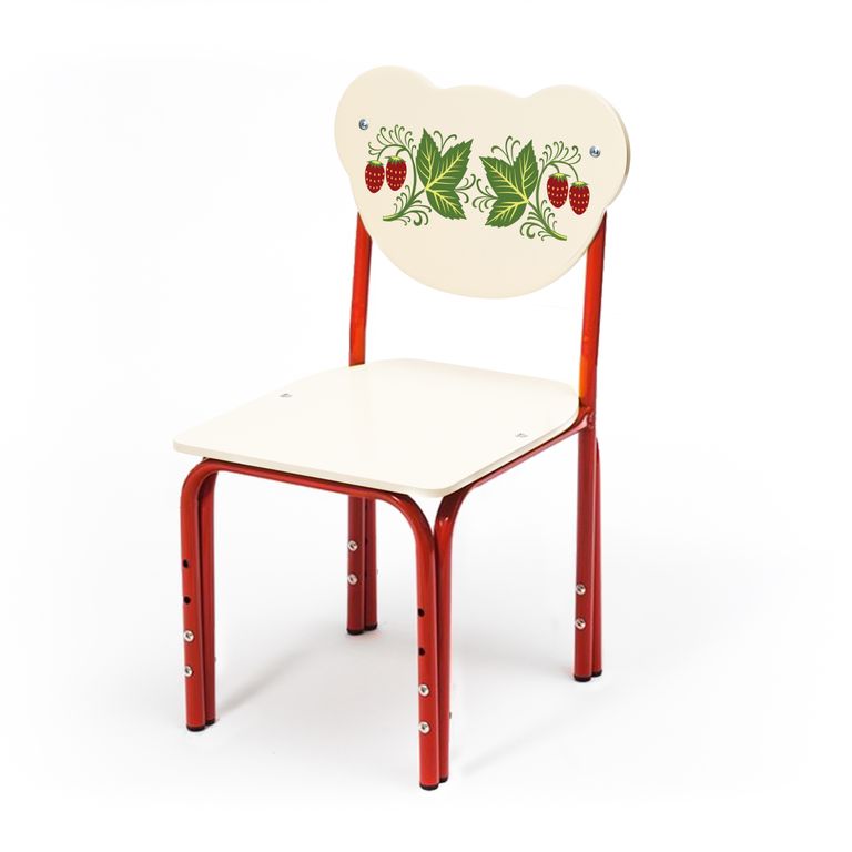 Это фанерный стульчик на металлокаркасе, имеющий пластмассовые заглушки на торцах. Производство детских стульев осуществляется из клееной фанеры. Для защиты от внешних воздействий фанера покрывается лаком. Размер регулировки 220...340