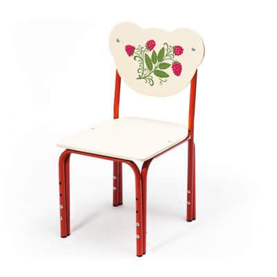 Это фанерный стульчик на металлокаркасе, имеющий пластмассовые заглушки на торцах. Производство детских стульев осуществляется из клееной фанеры. Для защиты от внешних воздействий фанера покрывается лаком. Размер регулировки 220...340
