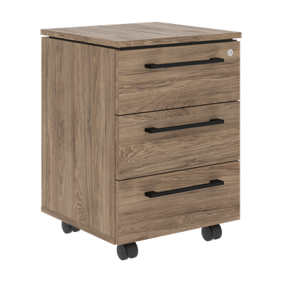 Каркас тумбы и топ в цвете Кария Пальмира, фасады в цвете Кария Пальмира. Комплектуется центральным замком, ручкой черного цвета с межцентровым расстоянием 256мм и колесной опорой. Ящики-фолдинги разборные 400х399х400, шариковые направляющие.