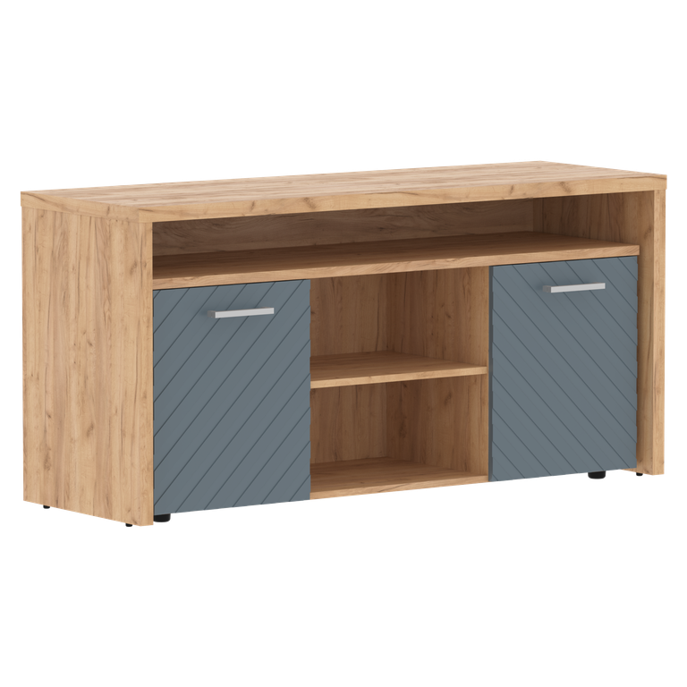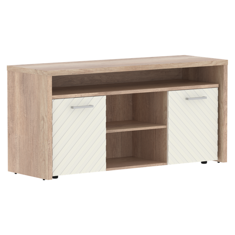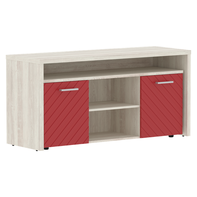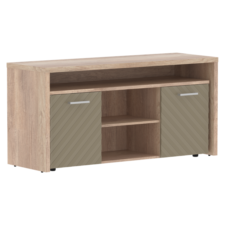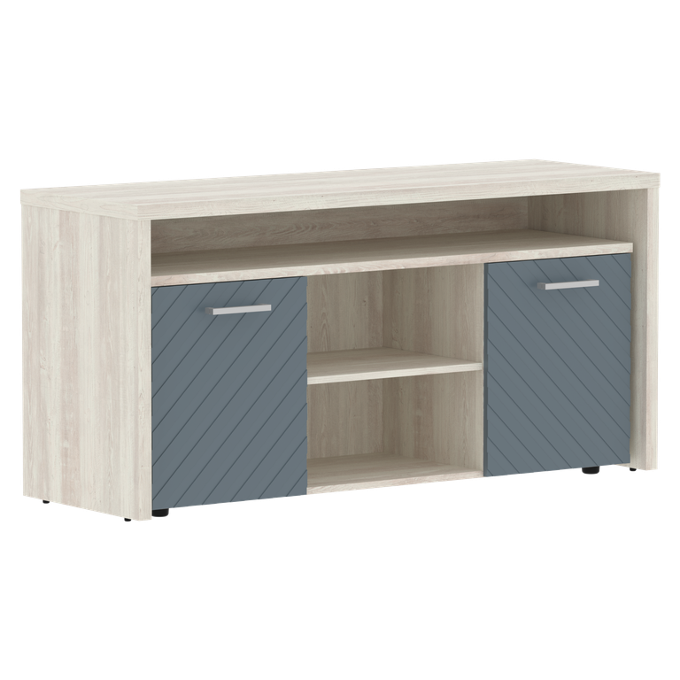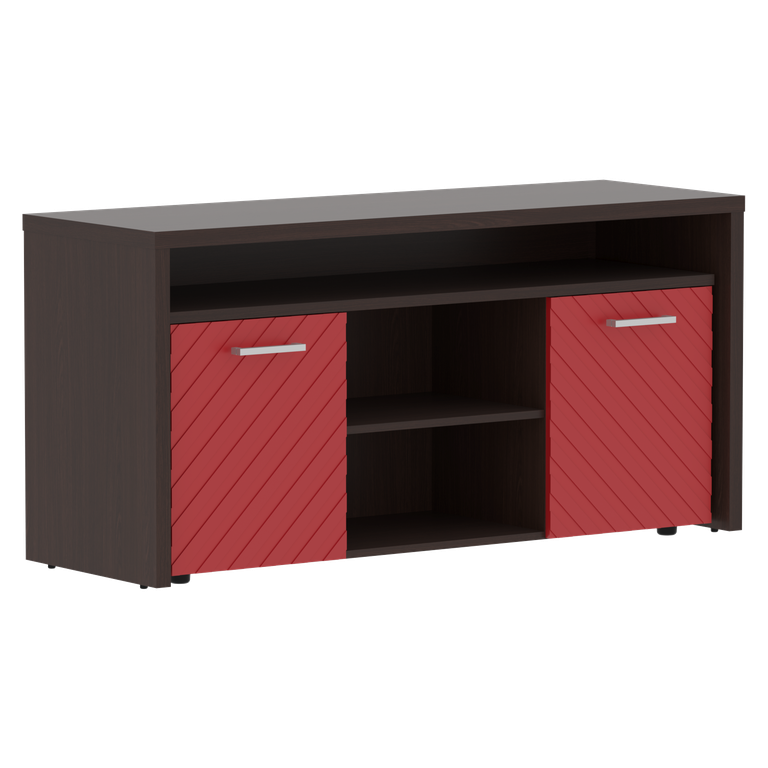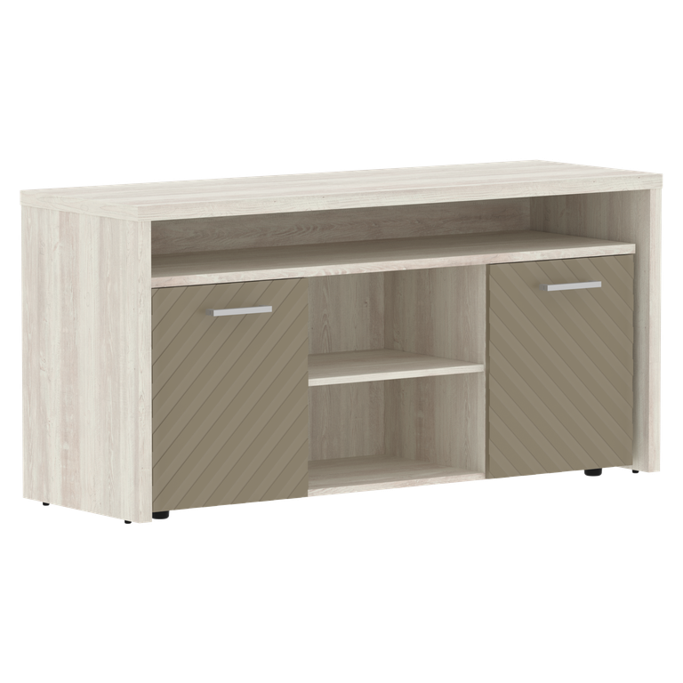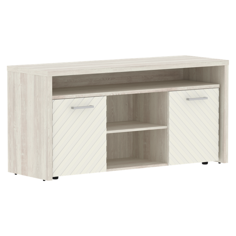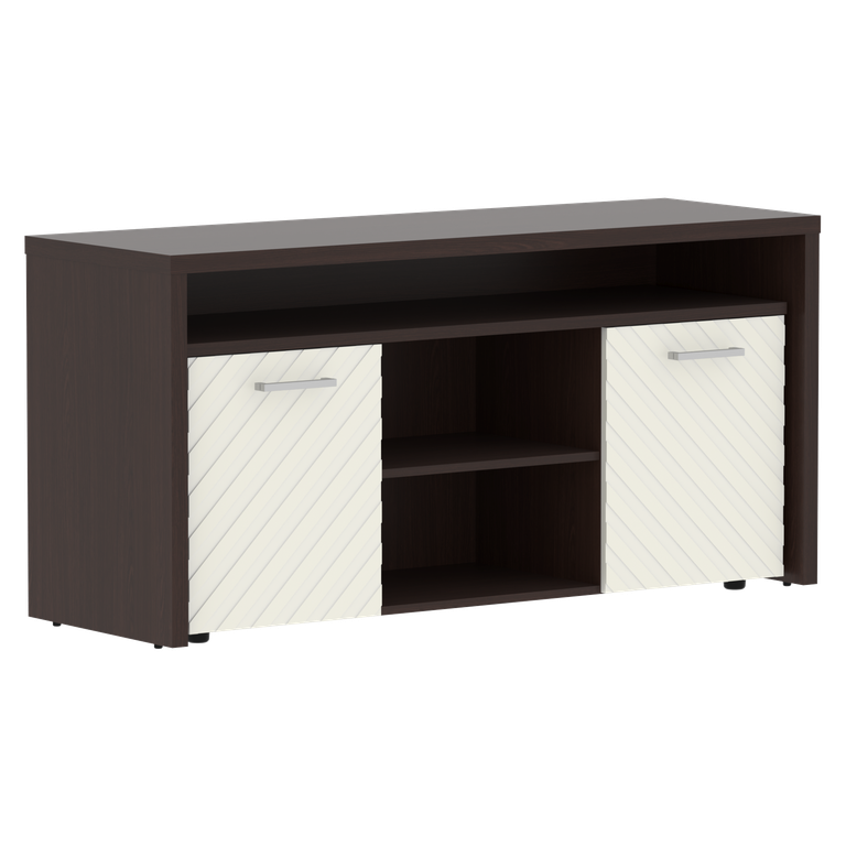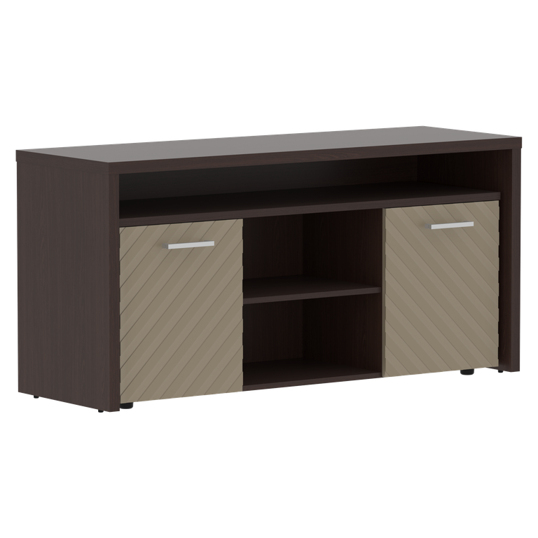 Состоит из консоли с тремя секциями: открытые полки, закрытая секция с полками и секция под холодильник. Внутренний размер секции под холодильник 430х450х546мм.