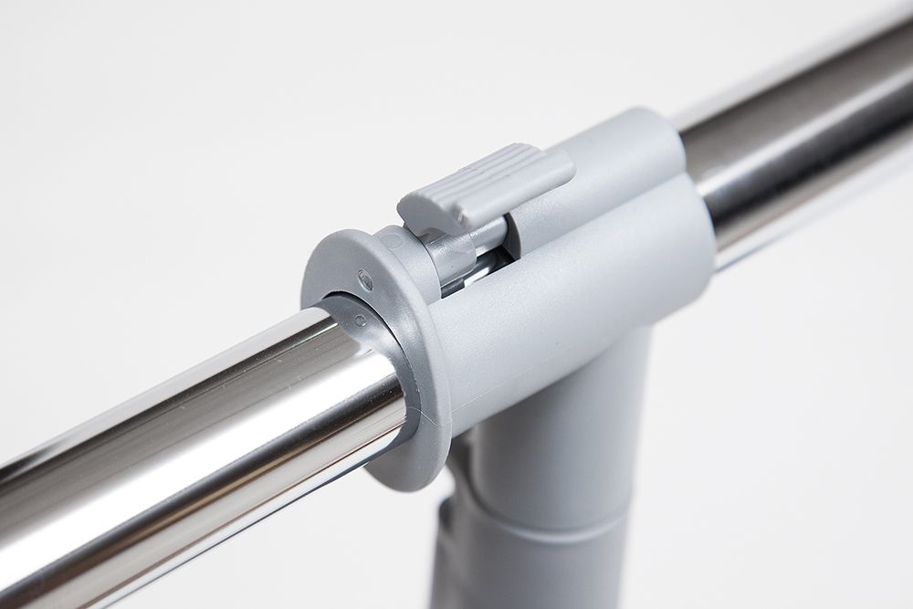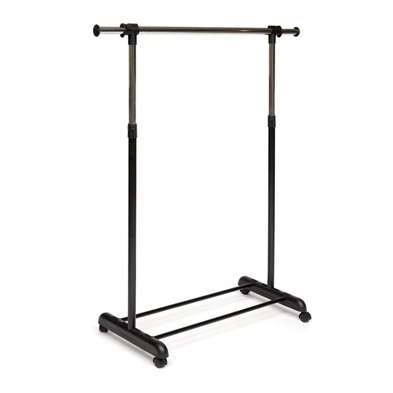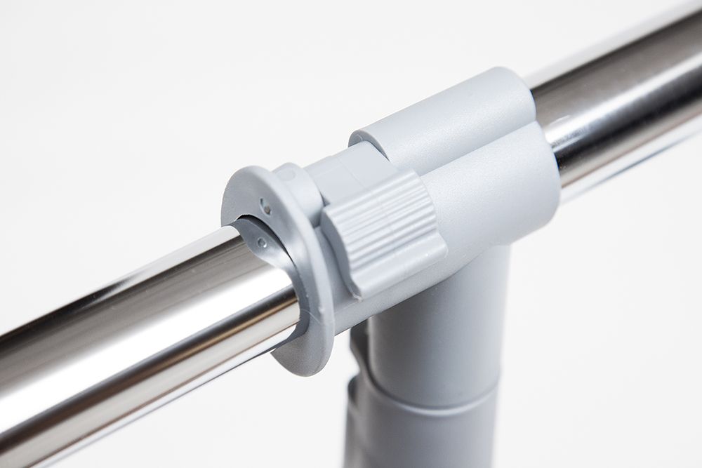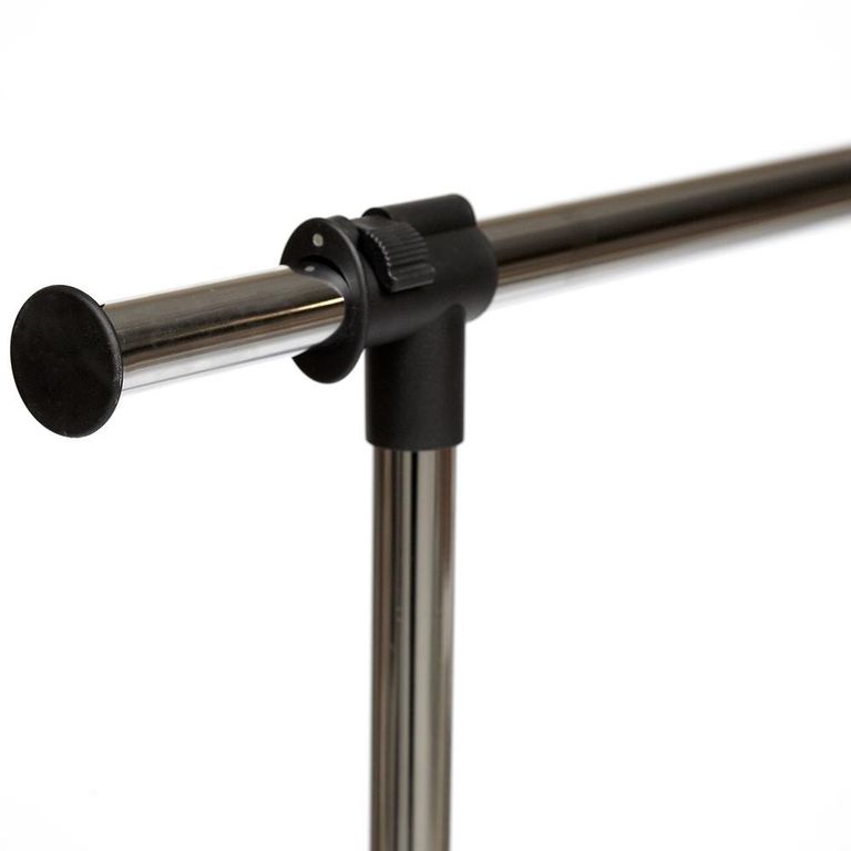 Хромированная вешалка для гардеробной комнаты, офисов, салонов раздвигается по высоте, оборудована колёсиками для свободного передвижения по гардеробной комнате.